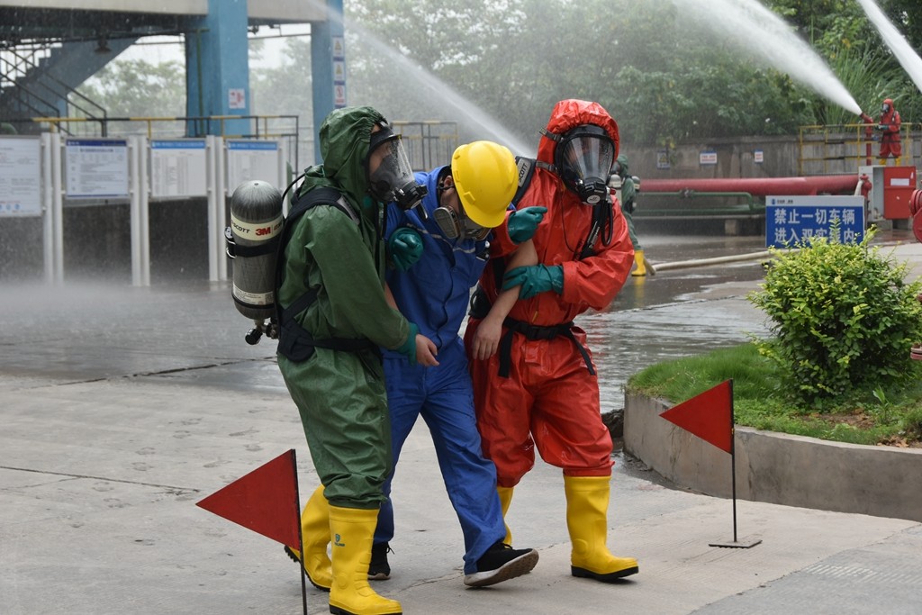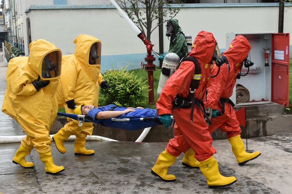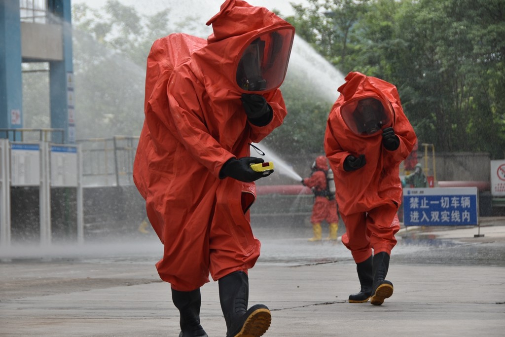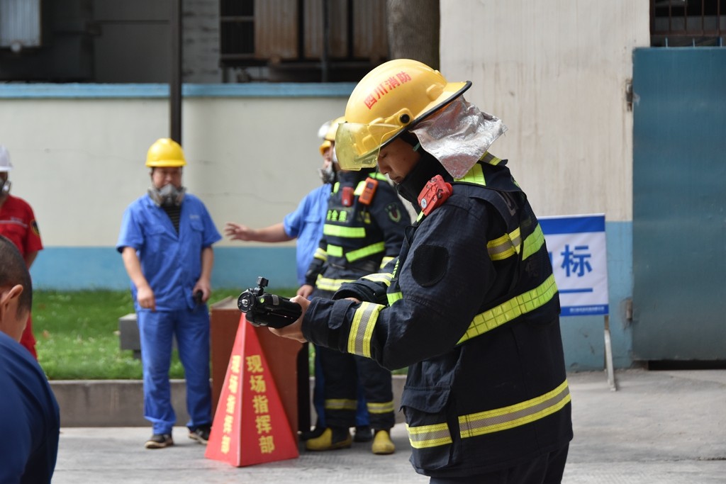 演練中,臨時指揮部精準(zhǔn)調(diào)度、正確指揮,應(yīng)急搶險組、醫(yī)療救護組、滅火洗消組、安全警戒組、物資供應(yīng)組、通訊聯(lián)絡(luò)組、環(huán)境監(jiān)測組、專家咨詢組、安全檢查組迅速行動、默契配合。在羅江區(qū)消防救援大隊大力支援下,經(jīng)過20分鐘的應(yīng)急救援,險情得到有效控制,直至現(xiàn)場洗消處置完畢,檢測外排達標(biāo),符合預(yù)案關(guān)閉條件,現(xiàn)場演練結(jié)束。