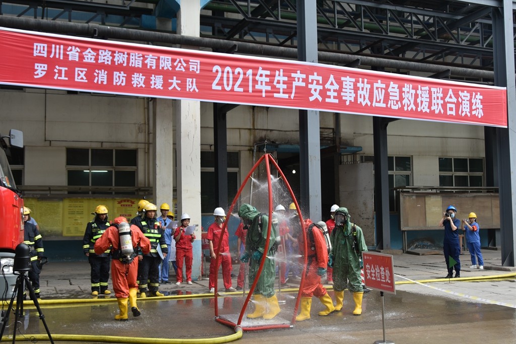 為認真貫徹落實2021年全國安全生產(chǎn)月“落實安全責(zé)任,推動安全發(fā)展”主題活動精神,提高應(yīng)急處置能力,保障員工生命和財產(chǎn)安全。6月21日上午,四川省金路樹脂有限公司、羅江區(qū)消防救援大隊開展2021年生產(chǎn)安全事故應(yīng)急救援聯(lián)合演練。此次演練由樹脂公司總經(jīng)理楊文毅任現(xiàn)場總指揮,副總經(jīng)理龔西任副總指揮。羅江區(qū)消防救援大隊指導(dǎo)員李俊,區(qū)應(yīng)急管理局副局長代寧,區(qū)環(huán)境生態(tài)局監(jiān)察大隊隊長申東海,集團常務(wù)副總裁劉祥彬,公司黨委書記、董事長任勇及經(jīng)營班子成員現(xiàn)場觀摩演練。